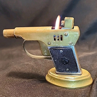 Not all Japanese table lighters relied on removable inserts. Some had built-in mechanisms, which can be trickier to restore but are equally fascinating. Among the most collectible are the pistol lighters, which were produced in all kinds of shapes and sizes. Many of these designs blurred the line between pocket and table lighters, with some models featuring removable bases so they could function as both.